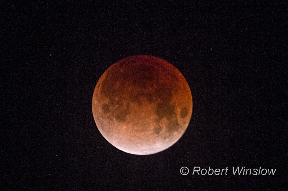 Marilyn woke up this morning before 6 AM and realized that I was not in bed. She noticed a light on in my office, but I was not in there. She then searched all over the house (even in closets) thinking that something might have happened to me. She thought that maybe I had had a heart attack or stroke and had wandered off in a daze. While downstairs she noticed that my old winter down jacket was missing from its hook. She let Duffy out the East door and called me – still no response. Then they went out the West door and finally found me photographing the Super Blue Blood Moon!