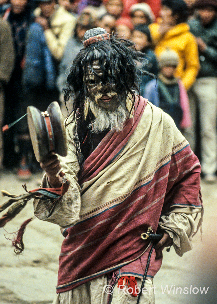 Since, as I mentioned earlier, I was sitting in the front row. This Mani Rimdu dancer came over to me…. and playing to the crowd…… pulled my beard. I pulled his right back. He then kind of secretly shook his finger at me as much to say “don’t do that”. It was all in fun.