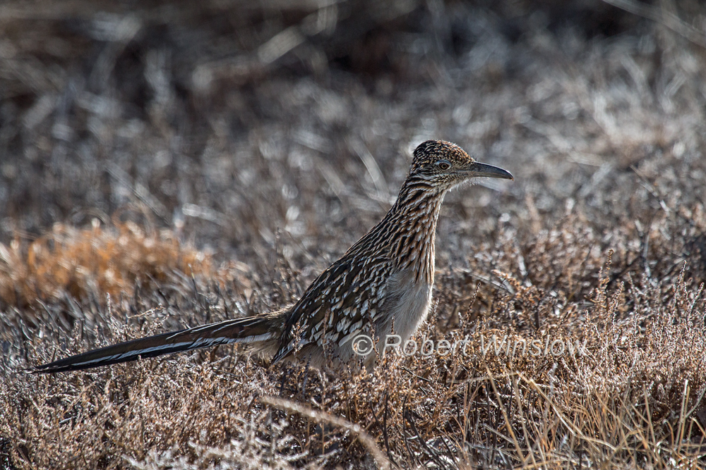 A Greater Roadrunner (GRRO) was reported seen in my county for the first time on Thanksgiving Day. It took multiple visits to the area, but it has now been seen by me and two other birders. Unfortunately, no photos yet. It is impossible to see once it crosses the road and disappears into the dense vegetation. These photos were taken in Bosque del Apache NWR in New Mexico.