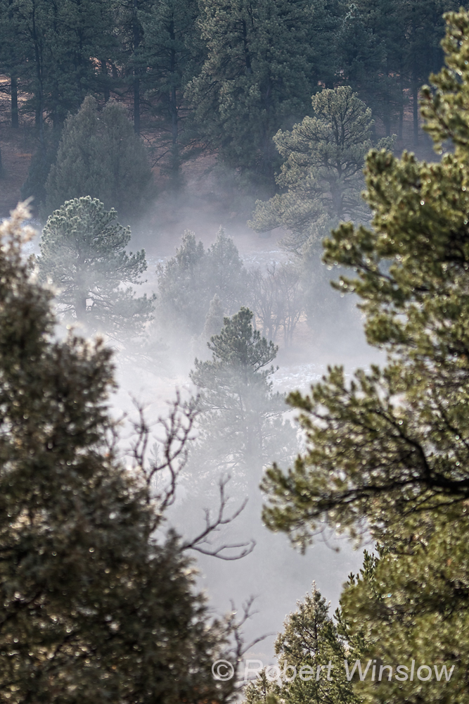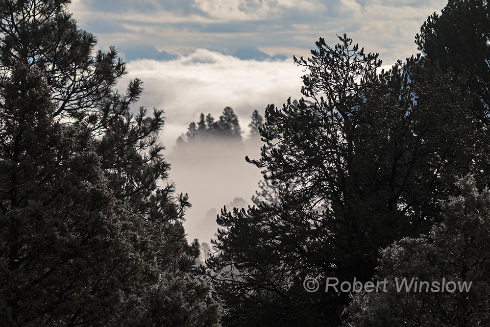 It rained overnight. The weather conditions created mist and fog in the morning. This is an infrequent occurrence for my dry area. The scene reminded me of the Pacific NW. All photos taken from my house