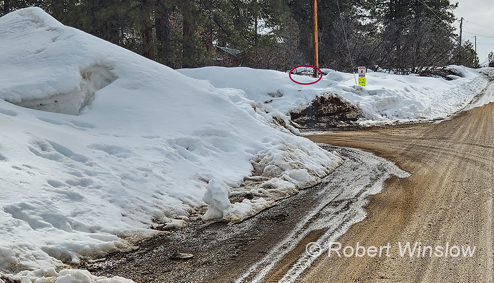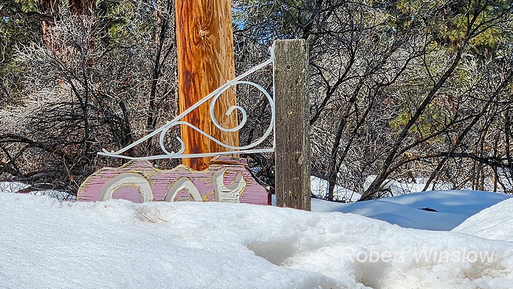 I have to love all of the moisture in the snowpack which is a blessing for all the beings of the southwest and perhaps will help to replenish some underground aquifers as well. As the snow melts there is mud on the trails and on the unpaved roads. The street sign for Oak Road, where I live, is beginning to appear once again.