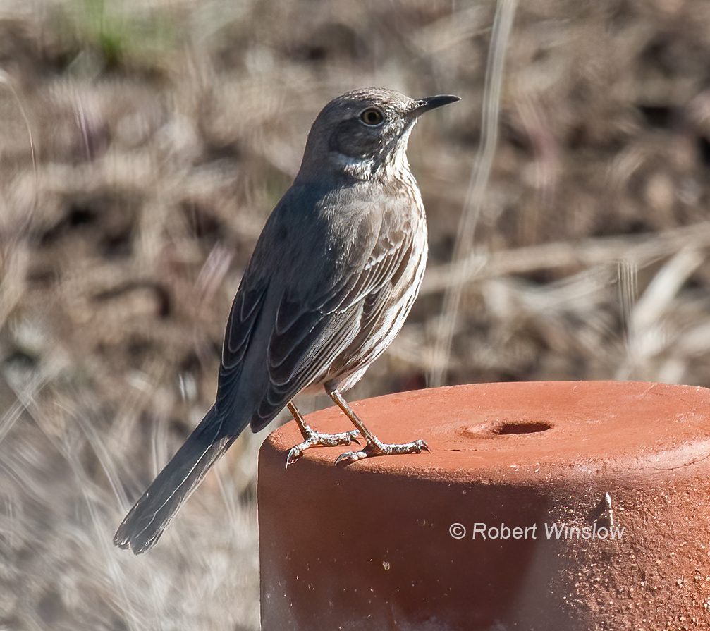 While I was cleaning a spot on one of my windows (not a common occurrence even in springtime), I noticed a Sage Thrasher in my yard.  They are not very common around here, but will be spotted occasionally.  This is the first one I’ve seen at my house.