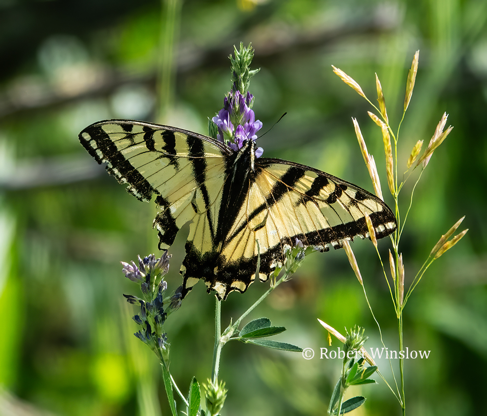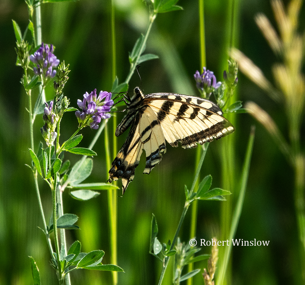 Western Tiger Swallowtail Butterfly. The lifespan of adults is only 6 to 14 days! Look at how the wings have deteriorated on this one! Yet she is still beautiful and amazing. But really – how do carbon atoms consistently make themselves into these delicate beings? Every year. And especially here in the mountains where only a few weeks ago there was still snow and ice everywhere. Females will lay green shiny eggs on the underside of leaves on host plants where the larvae (caterpillars) will emerge to feed on the leaves. They will then become brown colored chrysalides that look wood-like, slung on branches and tree trunks, and hibernate over-winter. Depending on the weather, they will emerge as butterflies sometime in the springtime. She was just one of many tiny miracles that I encountered as a walked along a wooded path yesterday.