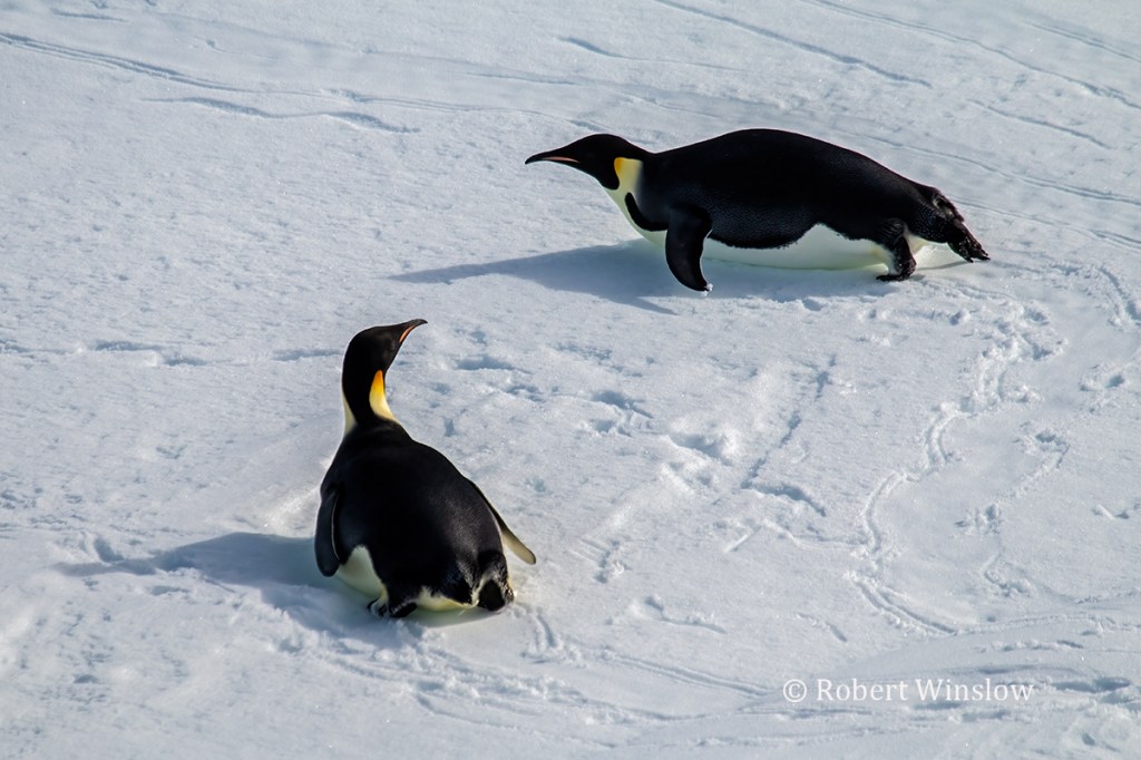 I had a video to go with this, but I can’t seem to be able to load a video so here is a still of two Emperor Penguins sliding on their bellies.
