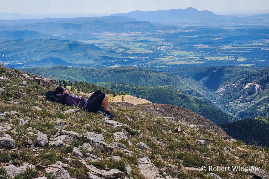 The last photo shows Sleeping Ute Mountain and sleeping hiker. Note the talus slopes that we had to hike up.