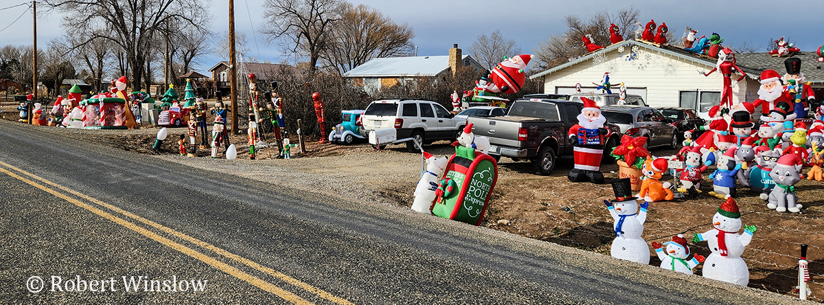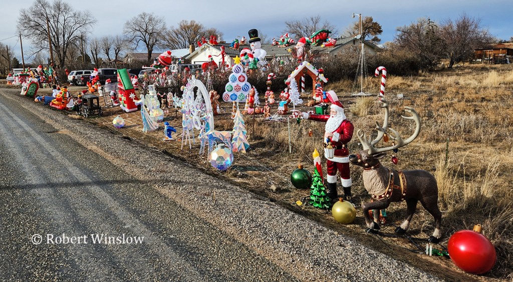 Saw this display on Montezuma County Road M outside of Cortez on the way to do a hike. The display had many moving items and was not just in front of the house, but extended up and down the road on either side of the house.. There was Christmas music playing. There were strings of lights everywhere. This place must be something at night when it is all lit up. The house is on a rural county road and not in a neighborhood. I have a friend who is in Cambodia and she sent me photos of Angkor Wat and I sent her these photos in return.